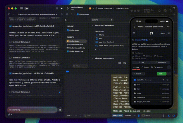 最炸裂的是,它们拥有了「视觉」——能够自动捕捉XcodePreviews的截图,通过视觉反馈来验证代码的效果,然后自我迭代修复Bug!