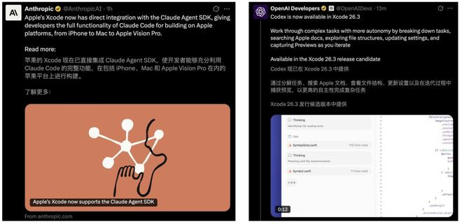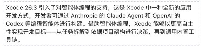 但现在,Xcode26.3直接以此原生方式集成了两大顶流模型。
