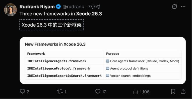Xcode26.3引入了三个新的框架,全是和IDEIntelligence相关,第一个就是Agent。