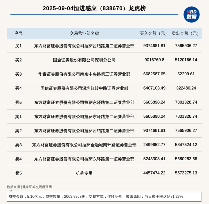 机构席位卖出557.33万 北交所上市公司恒进感应登龙虎榜